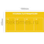 Уголок потребителя (4 карманов А4, сплошной цвет) горизонтальный