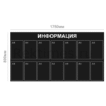 Стандартный информационный стенд на 14 карманов (сплошной цвет) c горизонтальной ориентацией и лаконичным дизайном отлично впишется в обстановку фойе вашей организации. Подходит как для небольших так и для просторных офисов.