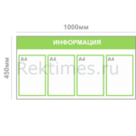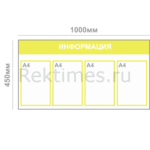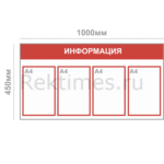 Главная / Магазин / Настенные стенды / Информационные стенды / Стандартные / Информационный стенд (4 кармана А4, горизонтальный)
