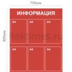 Информационный стенд (6 карманов А4, сплошной цвет)