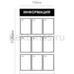 Стандартный информационный стенд на 9 карманов c вертикальной ориентацией и лаконичным дизайном отлично впишется в обстановку фойе вашей организации. Подходит как для небольших так и для просторных офисов.